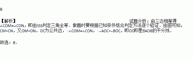 工人师傅常用角尺平分一个任意角.做法如下:如图所示,∠AOB是一个任意角,在边OA,OB上分别取OM=ON,移动角尺,使角尺两边相同的刻度分别与M,N重合.过角尺顶点C的射线OC即是∠AOB的平分线.这种做法的道理是 ( )