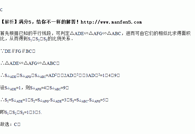 如图,,,且把三角形分成面积为,,三部分,则( )