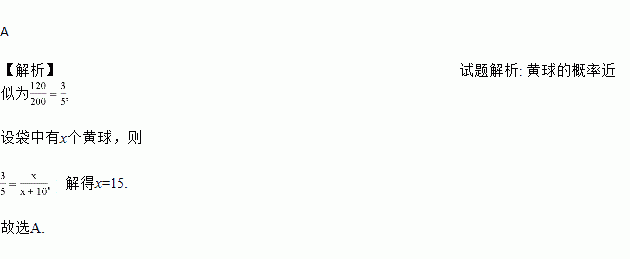一个口袋里有黑球10个和若干个黄球,从口袋中随机摸出一球记下其颜色,再把它放回口袋中摇匀,重复上述过程,共试验200次,其中有120次摸到黄球,由此估计袋中的黄球有( )