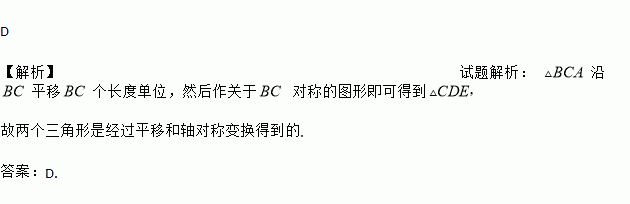 D 【解析】试题解析: 沿平移个长度单位,然后作关于 对称的图形即可得到 故两个三角形是经过平移和轴对称变换得到的. 答案:D.