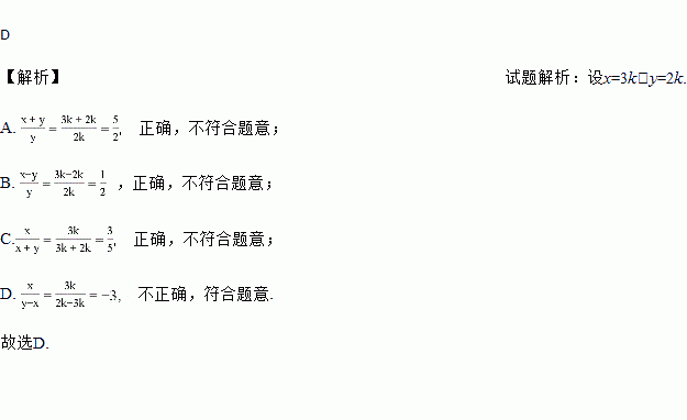 已知x:y=3:2,则下列各式中不正确的是( )