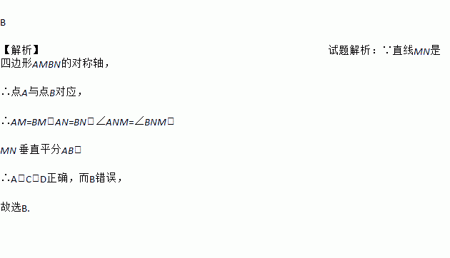 如图,直线是四边形AMBN的对称轴,点在直线上,下列判断错误的是( )