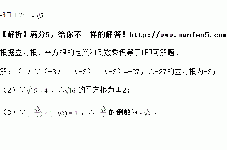 -27 的立方根为________,的平方根为________,的倒数为________.