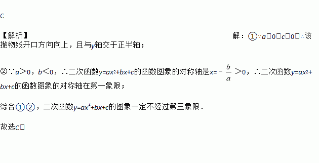 在二次函数y=ax2+bx+c中,如果a>0,b<0,c>0,那么它的图象一定不经过( )