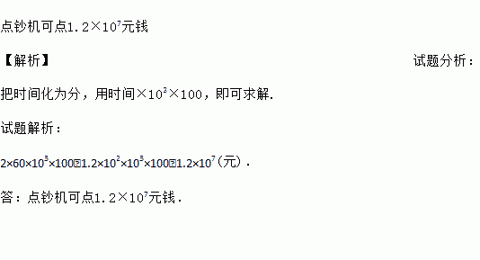 银行的点钞机每分钟大约点钞103张,两小时不间断点钞,则点钞机可点多少钱?(按点百元面额钞票计算)