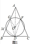 17.△ABC中,AB=AC,D、G、F分别是BC、AB、AC的中点,过G、F、D三点作⊙O.(1)如图1,求证:⊙O与BC相切;