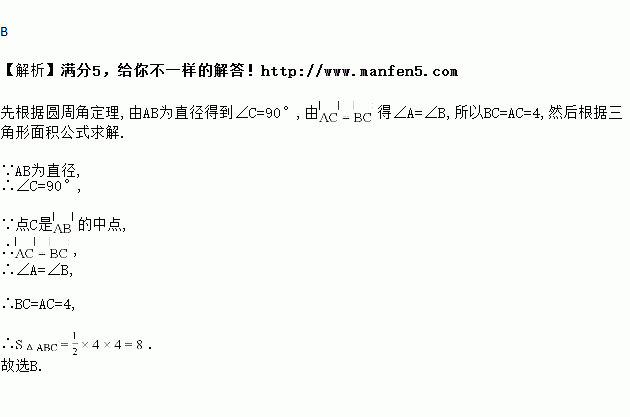 如图,在以为直径的半圆中,点是弧AB 的中点,若,则的面积是( )