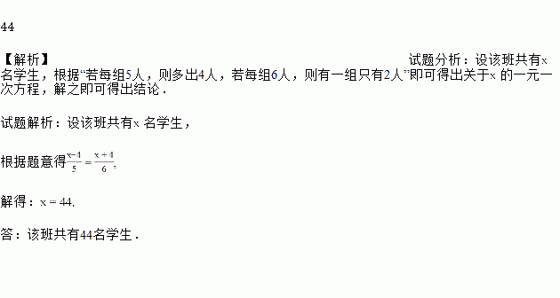 为实施“学讲计划”,某班学生计划分成若干个学习小组,若每组5人,则多出4人,若每组6人,则有一组只有2人,该班共有多少名学生?