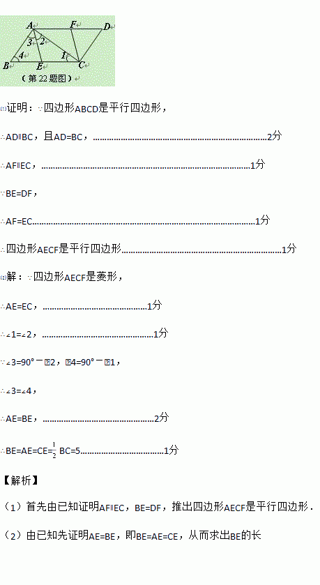 ⑴求证:四边形AECF是平行四边形;