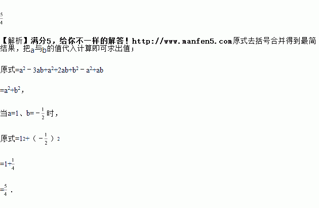 先化简,再求值:a(a﹣3b)+(a+b)2﹣a(a﹣b),其中a=1,b=﹣