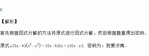小强是一位密码编译爱好者,在他的密码手册中,有这样一条信息:x-y,a-b,2, x2-y2,a, x+y,分别对应下列六个字:南、爱、我、美、游、济,现将2a(x2-y2)-2b(x2-y2)因式分解,结果呈现的密码信息可能是( )