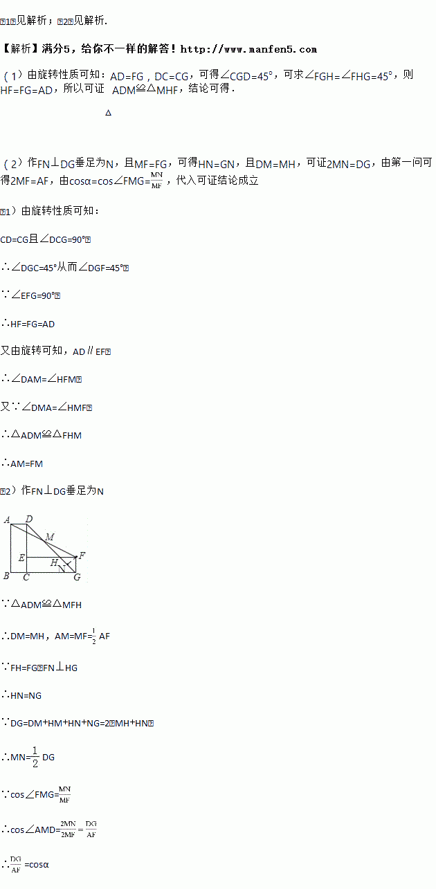 如图,矩形ABCD绕点C顺时针旋转90°后得到矩形CEFG,连接DG交EF于H,连接AF交DG于M;