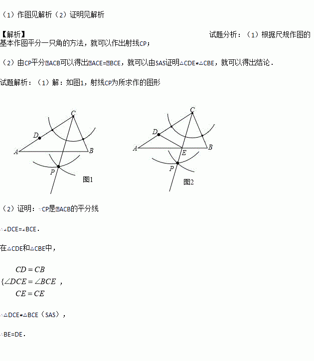 (2)在(1)中,设CP与AB相交于点E,连接DE,求证:BE=DE.