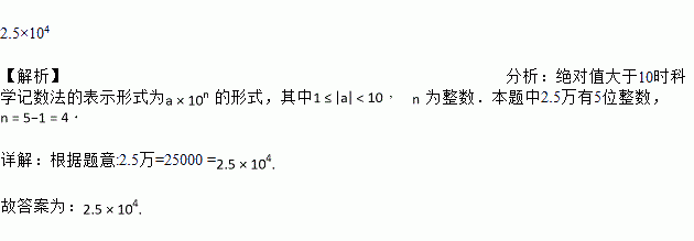 科技兴国,国之利器。截至2017年底,我国高铁已经建成运营的里程约为2.5万公里,占全世界超过六成,居世界第一位。其中2.5万公里用科学计数法表示为________________ 公里。