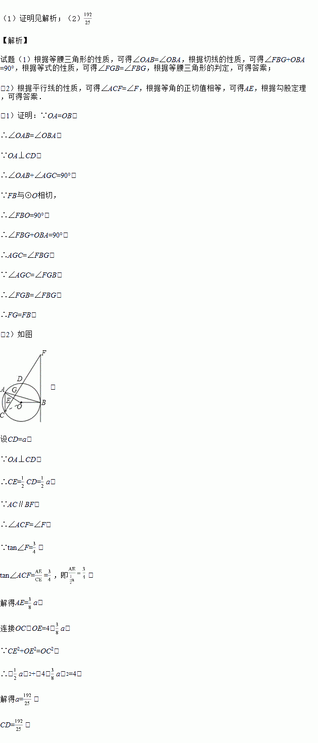 如图,点A、B、C、D均在⊙O上,FB与⊙O相切于点B,AB与CF交于点G,OA⊥CF于点E,AC∥BF.