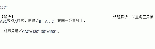 如图所示,将一个含30°角的直角三角板ABC绕点A旋转,使得点B,A,C′在同一条直线上,则三角板ABC旋转的角度是_____.