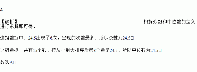 A. 24.5,24.5 B. 24.5,24 C. 24,24 D. 23.5,24