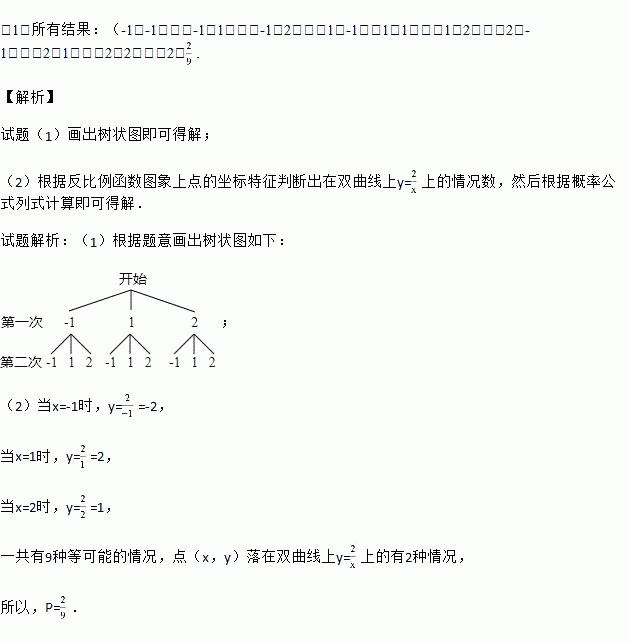 (2)将第一次抽出的数字作为点的横坐标x,第二次抽出的数字作为点的纵坐标y,求点(x,y)落在双曲线