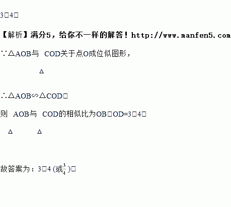 如图,将△AOB以O为位似中心,扩大得到△COD,其中B(3,0),D(4,0),则△AOB与△COD的相似比为_____.