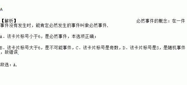 A. 该卡片标号小于6 B. 该卡片标号大于6