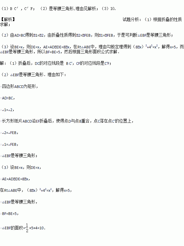 (1)折叠后,DC的对应线段是 ,CF的对应线段是 ;