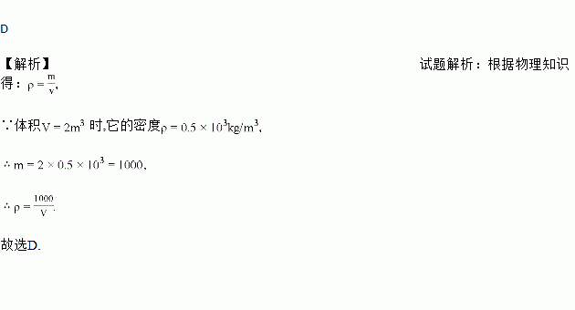 一定质量的干松木,当它的体积V=2m3时,它的密度为ρ=0.5×103kg/m3,且ρ与V成反比例,则ρ与V的函数关系式为( )