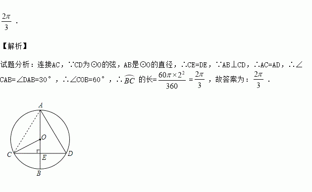 如图,CD为⊙O的弦,直径AB为4,AB⊥CD于E,∠A=30°,则的长为 (结果保留π).