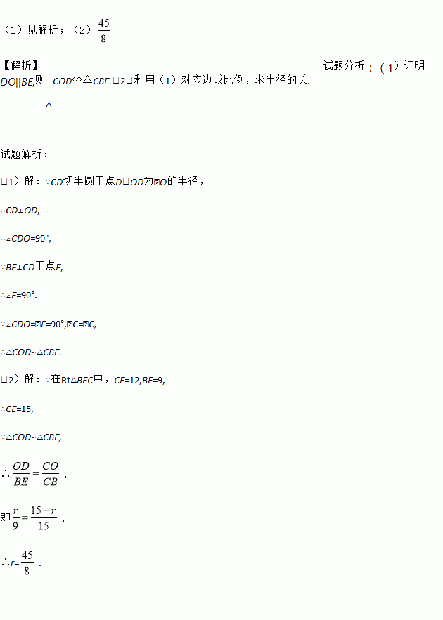 (1)求证:△COD∽△CBE;