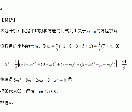 已知一组数据的方差为,数据为:-1,0,3,5,x,那么x等于( )