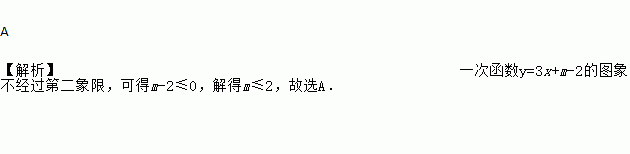 一次函数y=3x+m-2的图象不经过第二象限,则m的取值范围是( )