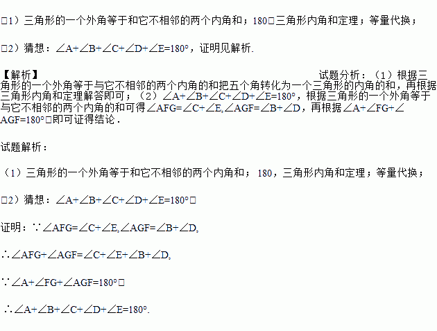∴∠A+∠B+∠C+∠D+∠E=180°.( )