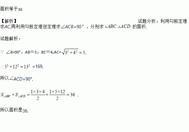 AB=3,BC=4,CD=12,AD=13,假如这是一块钢板,你能帮工人师傅计算一下这块钢板的面积吗?
