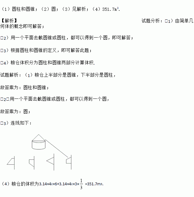 (1)粮仓是由两个几何体组成的,他们分别是________;
