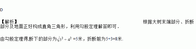 如图,一棵大树在一次强风中于离地面3m处折断倒下,树干顶部在离根部4m处,这棵大树在折断前的高度为( )m.
