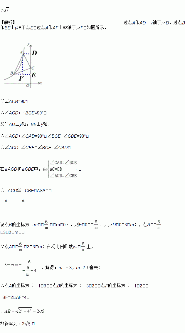 上在第二象限内的分支上的两个点,点C(0,3),且△ABC满足AC=BC,∠ACB=90°,则线段AB的长为__.