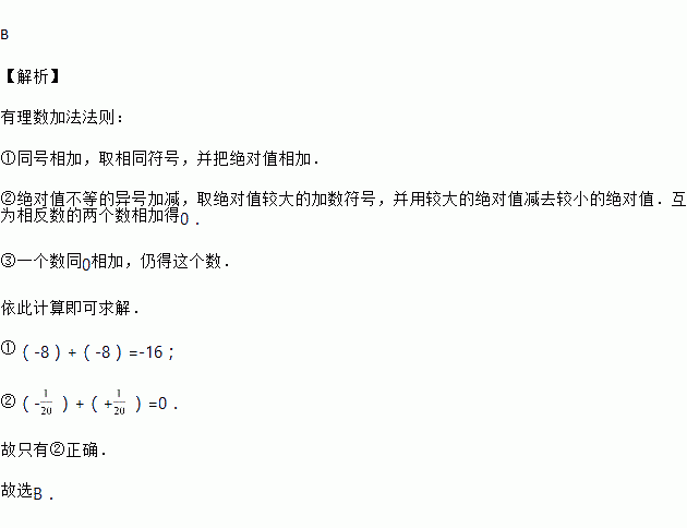 给出下列算式:①(–8)+(–8)=0;②(–)+(+)=0.其中