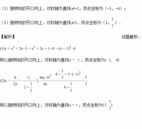 求出下列抛物线的开口方向、对称轴、顶点坐标.