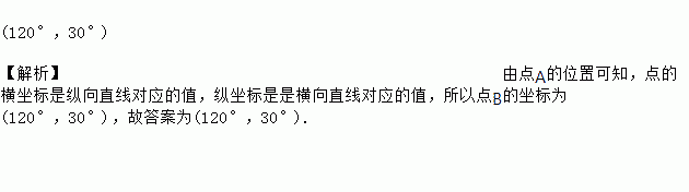如图,一艘客轮在太平洋中航行,所在位置是A(140°,20°),10小时后到达B地,用坐标表示B地的位置是 .