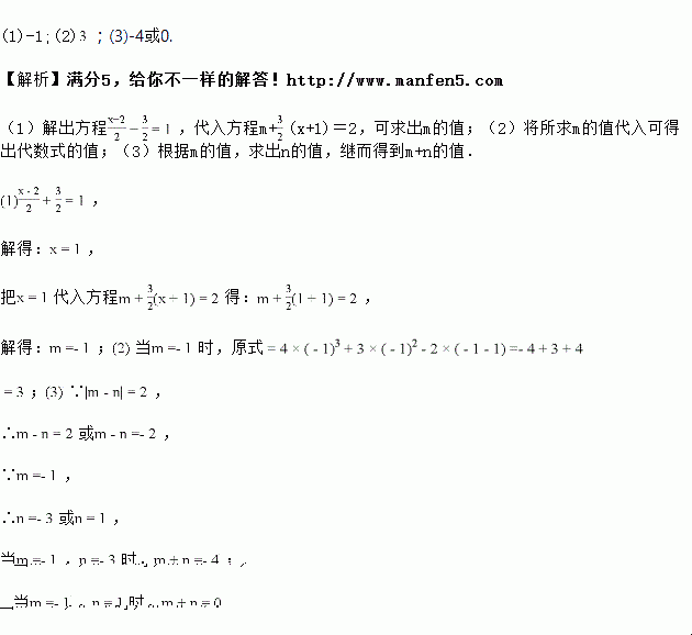 (3)根据所求m的值,当|m﹣n|=2时,试求m+n的值.