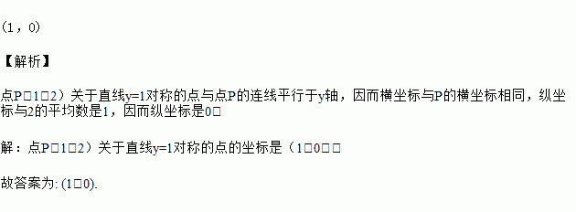 点P(1,2)关于直线y=1对称点的坐标是____.