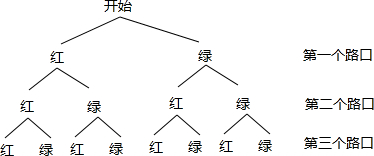 3.小明每天坐爸爸的汽车上学都要经过三个只有红灯和绿灯的路口,假如每个路口红灯和绿灯亮的时间相同,那么小明从家随时出发去学校,他一次也没有遇到红灯的概率是多少?( )| A. | $\frac{1}{16}$ | B. | $\frac{1}{8}$ | C. | $\frac{1}{4}$ | D. | $\frac{1}{2}$ |