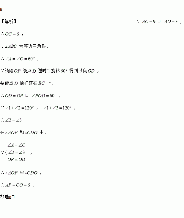 如图,在等边中, ,点在上,且,点是上一动点,连结,将线段绕点逆时针旋转得到线段,要使点恰好落在上,则的长是( )