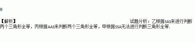 已知△ABC的六个元素如图,则甲、乙、丙三个三角形中和△ABC全等的图形是( )