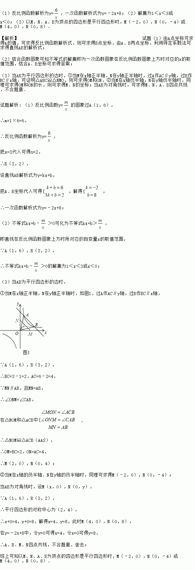 (3)若点M在x轴上、点N在y轴上,且以M、N、A、B为顶点的四边形是平行四边形,请直接写出点M、N的坐标.