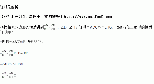 如图,四边形ABCD∽四边形EFGH,连接对角线AC,EG.