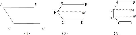 (2)沿P作一条平行AB、CD的平行线PM,由两直线平行,同旁内角互补可得∠A+∠APM=180°,∠MPC+∠C=180°,故∠A+∠APC+∠C=360°;