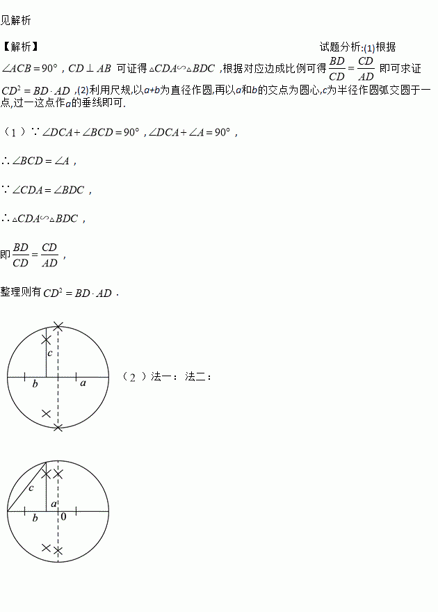 ()如图②,已知线段、,用直尺和圆规作线段,使得是、的比例中项.(保留作图的痕迹,不写作法)