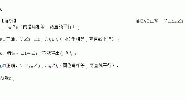 C. ∵∠1=∠3,∴ ∥ D. ∵∠2=∠3,∴∥