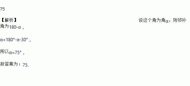 如果一个角比它的邻补角小30°,则这个角的度数为______°.