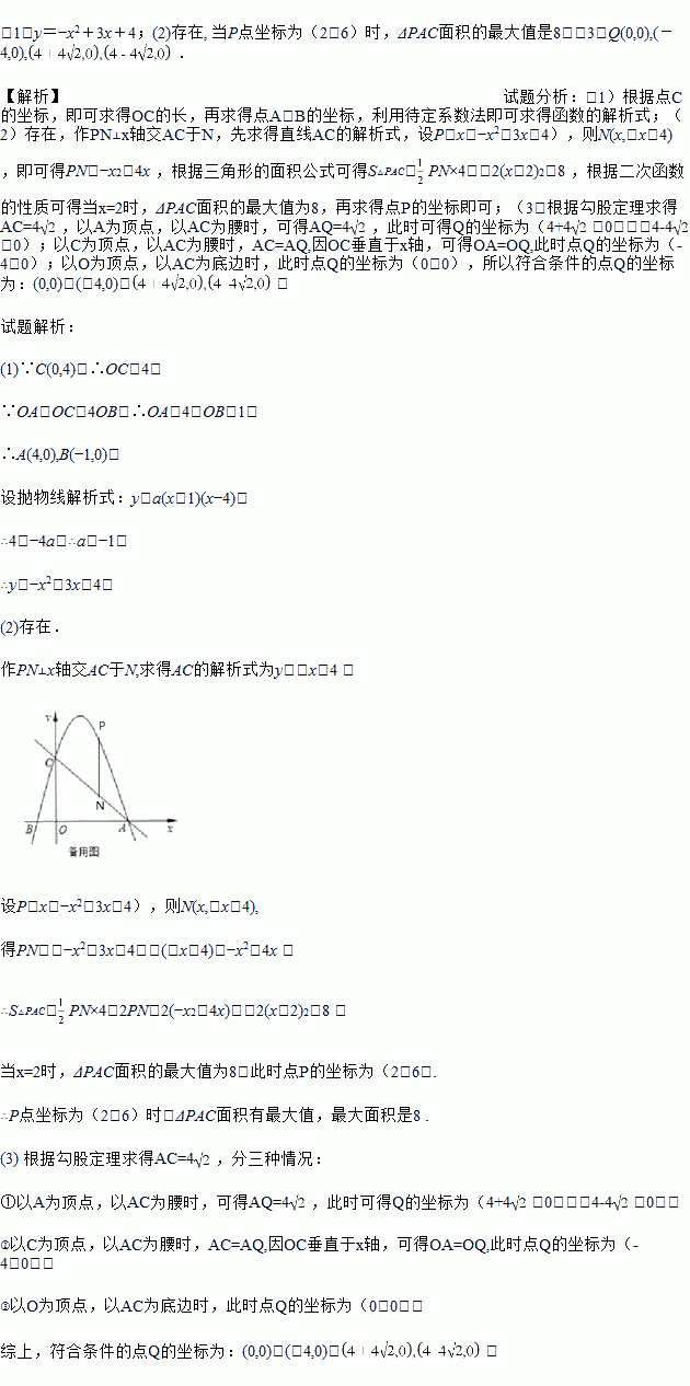 (3)在x轴上是否存在点Q,使得△ACQ是等腰三角形?若存在,请直接写出点Q的坐标;若不存在,请说明理由.